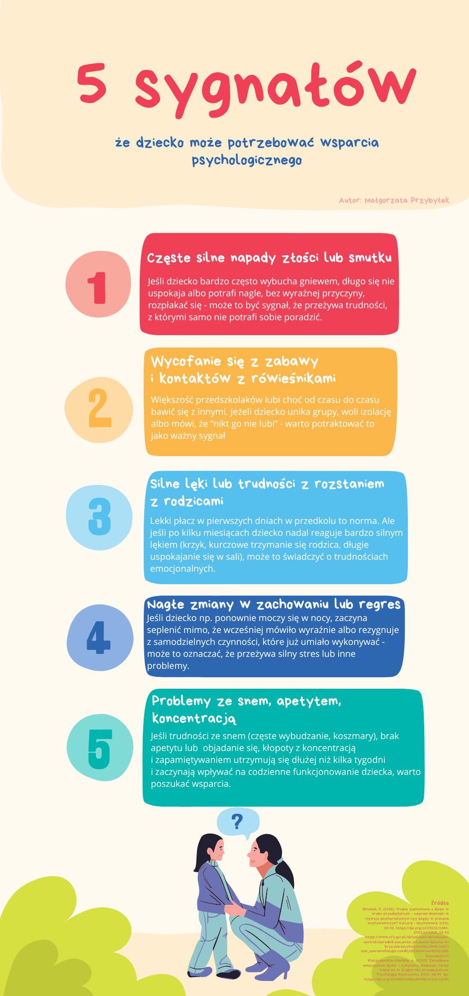 Wspieram także dzieci, które potrzebują trochę więcej czasu na adaptację, są nieśmiałe, impulsywne lub mają trudności w kontaktach z innymi. Współpracuję z nauczycielami, rodzicami i innymi specjalistami, aby każde dziecko mogło czuć się bezpieczne i rozwijać swoje możliwości.