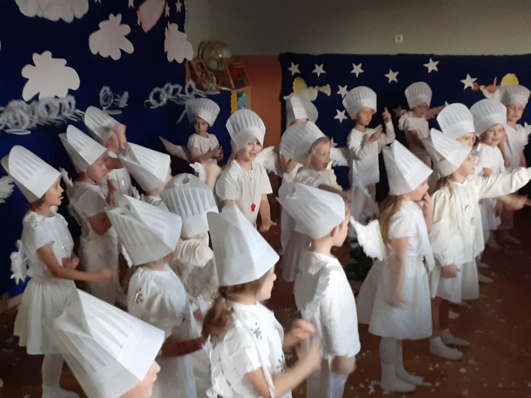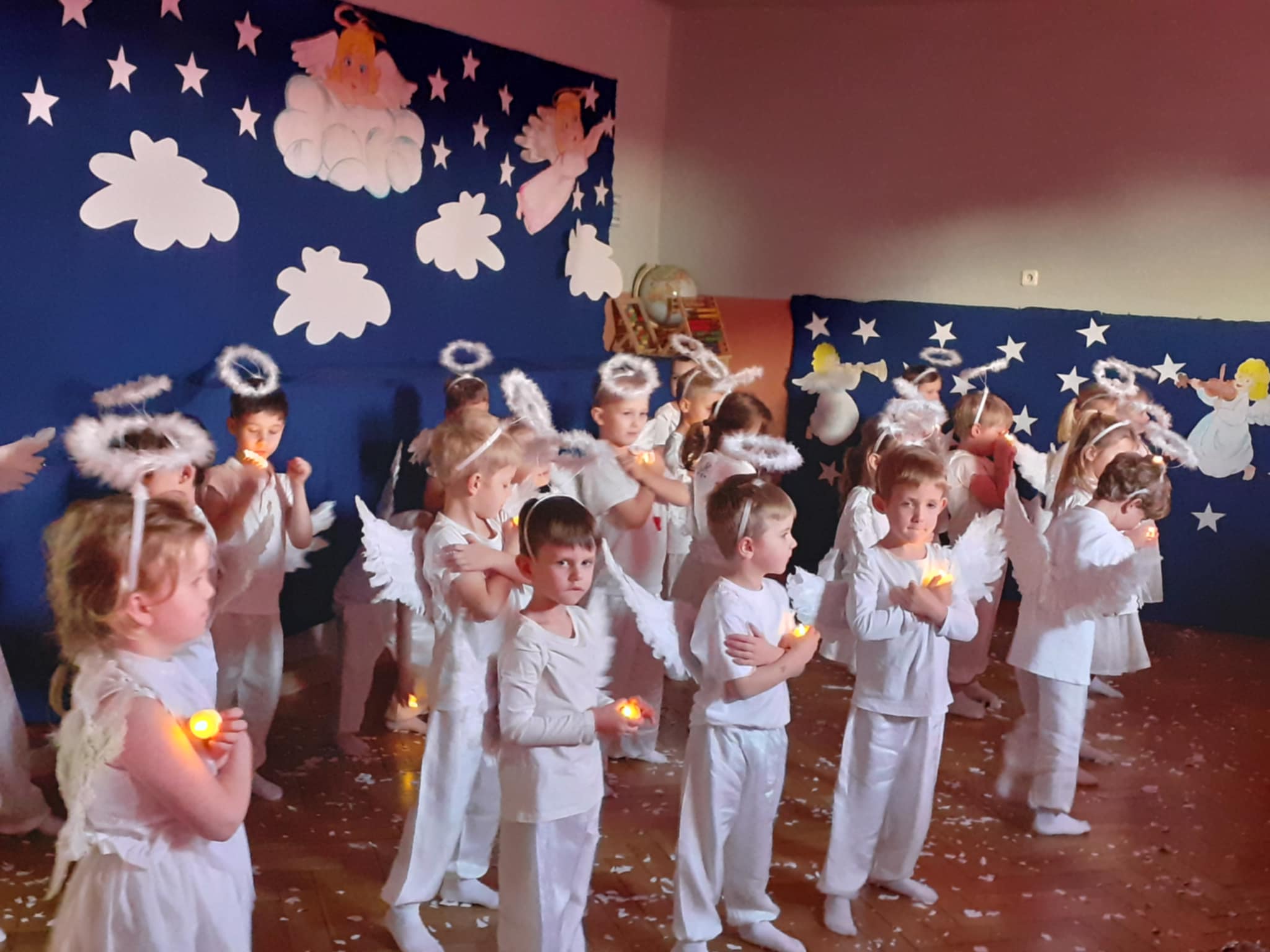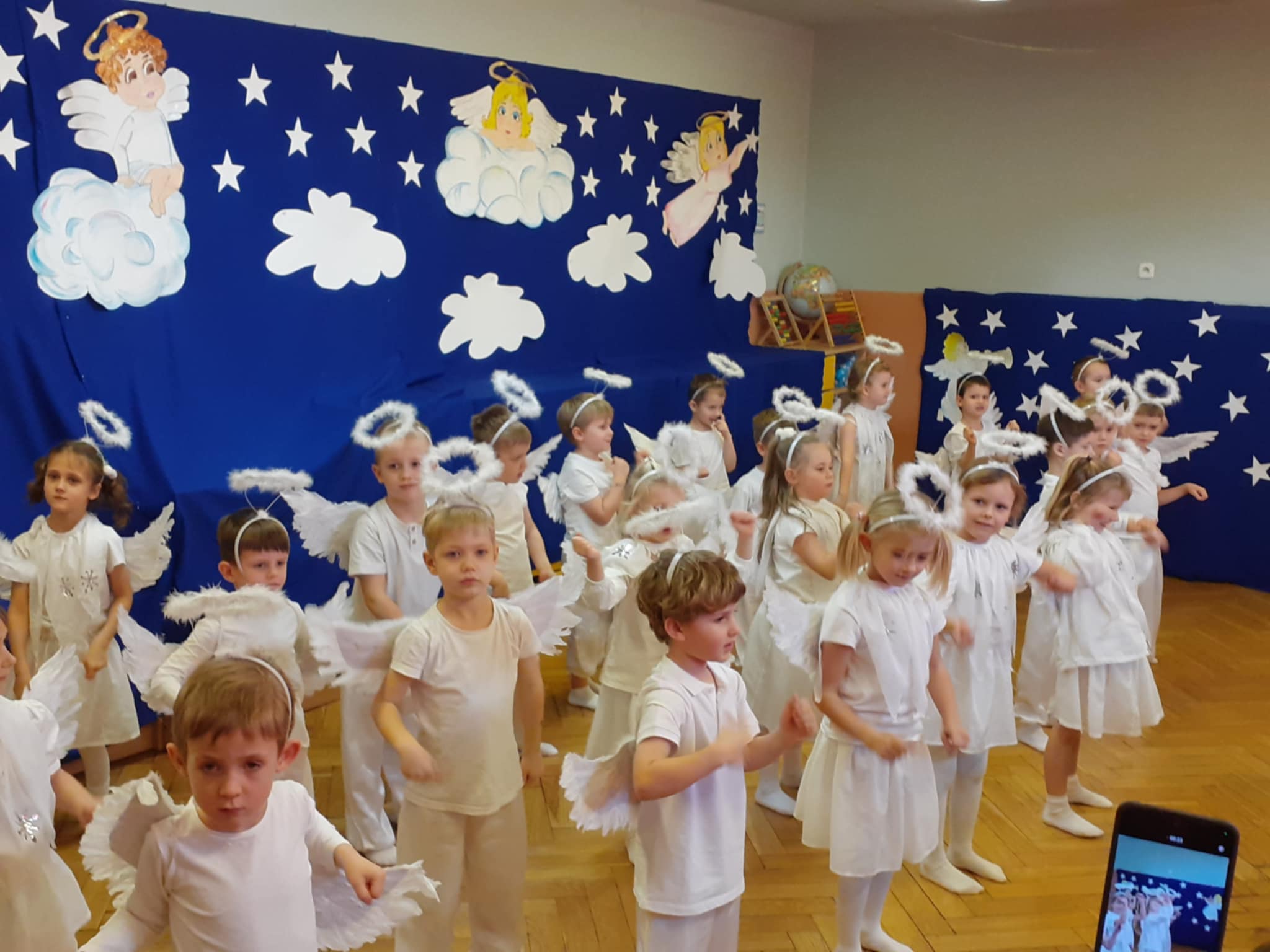 W grupie Puchatki w Przedszkolu odbyło się spotkanie choinkowe pt"W Aniołkowie", które wprowadziło wszystkich w magiczną, świąteczną atmosferę.