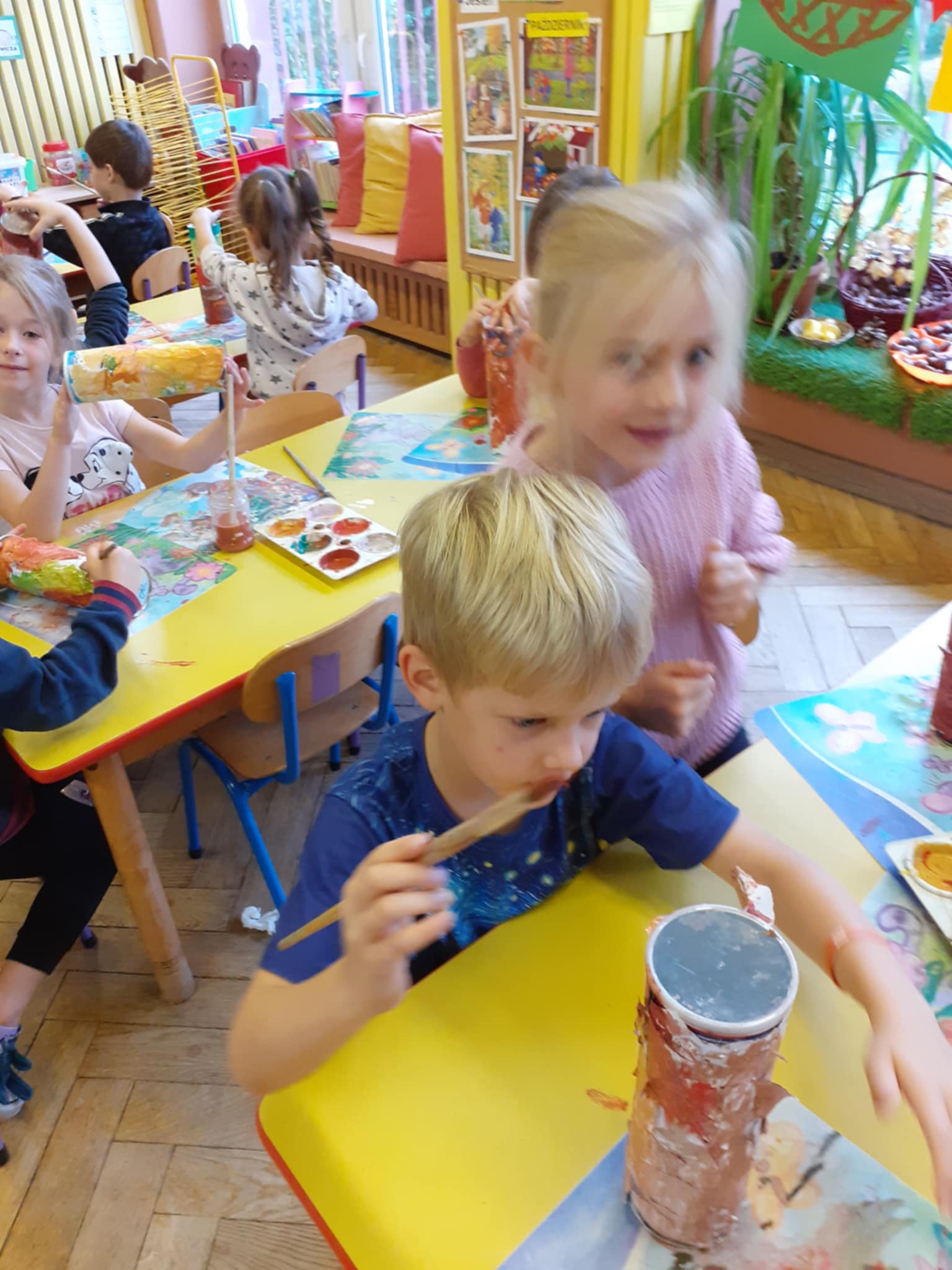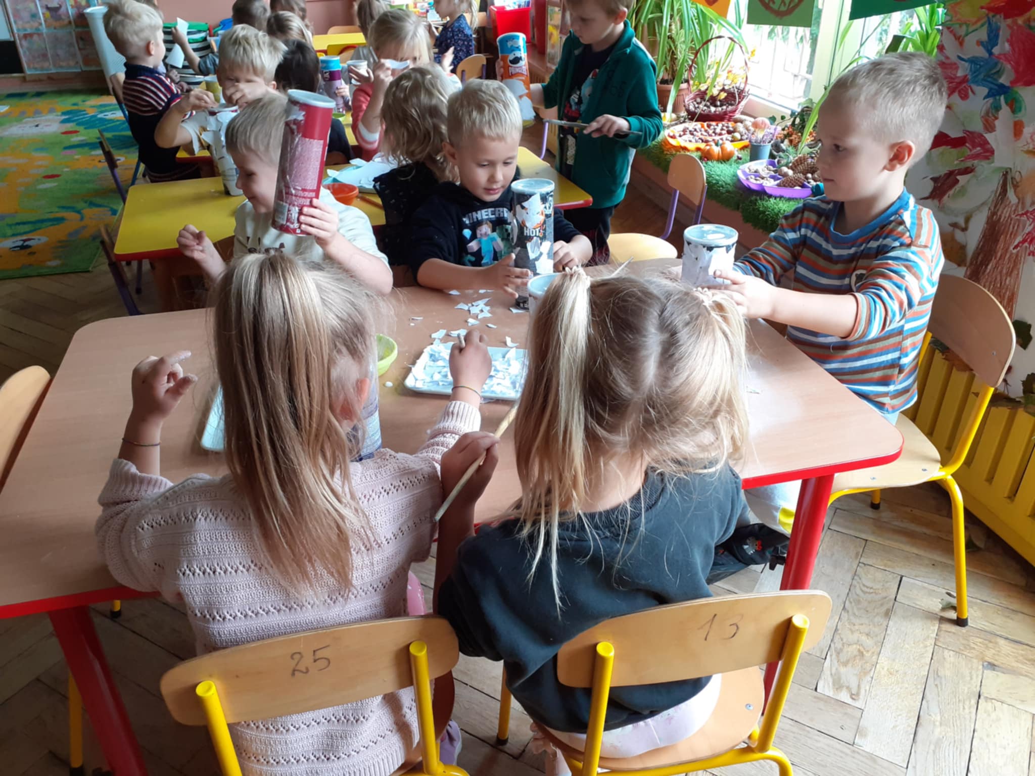 23 września dzieci z grupy Puchatki uroczyście powitały "Pierwszy Dzień Jesieni". Tego dnia królowały kolory: czerwony, żółty, brązowy i pomarańczowy. Przedszkolaki poznały dary jesieni, przeliczały zbiory oraz tańczyły jesienne tańce. Nie zabrakło również kolorowych prac plastycznych.