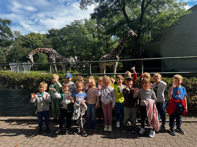 W piękny wrześniowy dzień dzieci z grupy "Puchatki" wybrały się na wycieczkę do łódzkiego Zoo. Podczas spaceru przedszkolaki miały okazję zobaczyć wiele egzotycznych zwierząt, takich jak lwy, słonie, żyrafy, małpy. Największe emocje wzbudziła wizyta w Orientarium, gdzie dzieci z zachwytem obserwowały karmienie i kąpiel słoni oraz podziwiały podwodne życie ogromnych płaszczek i rekinów.