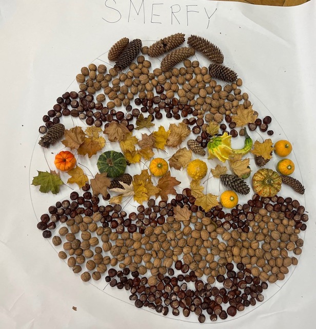Dzieci z grupy Smerfy zrobiły mandalę z tworzywa naturalnego. Twórcza zabawa pozwoliła im rozwijać wyobraźnię, ćwiczyć koncentrację oraz odkrywać piękno przyrody.