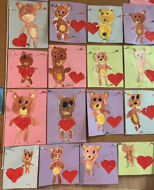 W naszej grupie odbył się radosny Dzień Pluszowego Misia! Dzieci przyniosły swoje ulubione pluszaki, które towarzyszyły im przez cały dzień. Przedszkolaki uczestniczyły w różnorodnych aktywnościach- były wspólne zabawy, misiowe piosenki i zagadki oraz zajęcia ruchowe. Jednym z najważniejszych punktów była praca plastyczna. Dzieci rysowały misia według instrukcji słownej i obrazkowej, ucząc się jednocześnie uważnego słuchania oraz podążania za wskazówkami. Powstały piękne prace, z których każde dziecko mogło być dumne. To był wyjątkowy i pełen uśmiechu dzień! Dziękujemy dzieciom za wspaniałą zabawę.