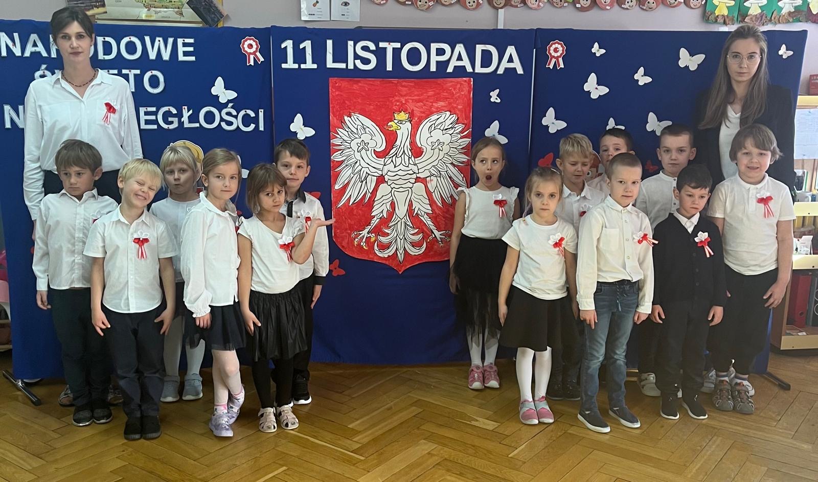 13 grudnia grupa Smerfy zaprezentowała dla całego przedszkola wyjątkowy występ z okazji odzyskania przez Polskę Niepodległości. Przedszkolaki z dumą przedstawiły przygotowany występ artystyczny, w którym znalazły się wiersze patriotyczne, piosenki oraz układy taneczne. Dzieci z wielkim zaangażowaniem i radością uczciły to ważne dla wszystkich Polaków święto. Ich występ wprowadził całą społeczność przedszkolą w podniosły, a jednocześnie pełen dziecięcej energii nastrój.